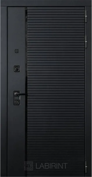 Фурнитура в черном цвете: Броненакладка врезная, накладка со шторкой, глазок , дверная ручка, ночная задвижка. Цилиндр ключ-вертушка Apecs, регулируемый эксцентрик.